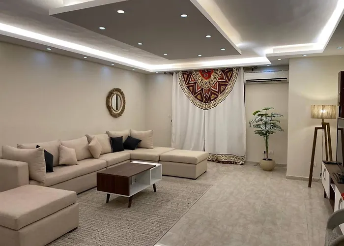 توفّر الشقة المطبخ الكامل مع المايكرويف والغلاية الكهربائية وثلاجة كجزء من خيارات الخدمة الذاتية. يتم تقديم المأكولات المصرية El Dahan الذي يقع على بعد 600 متر فقط. يقع مطار القاهرة الدولي على مسافة 20 كم من هذه الشقة. يمكن للضيوف الاستمتاع بالاسترخاء التام في مكان الإقامة الّذي يتضمن وسائل الراحة الفاخرة مثل المنطقة للنزهات والحديقة.